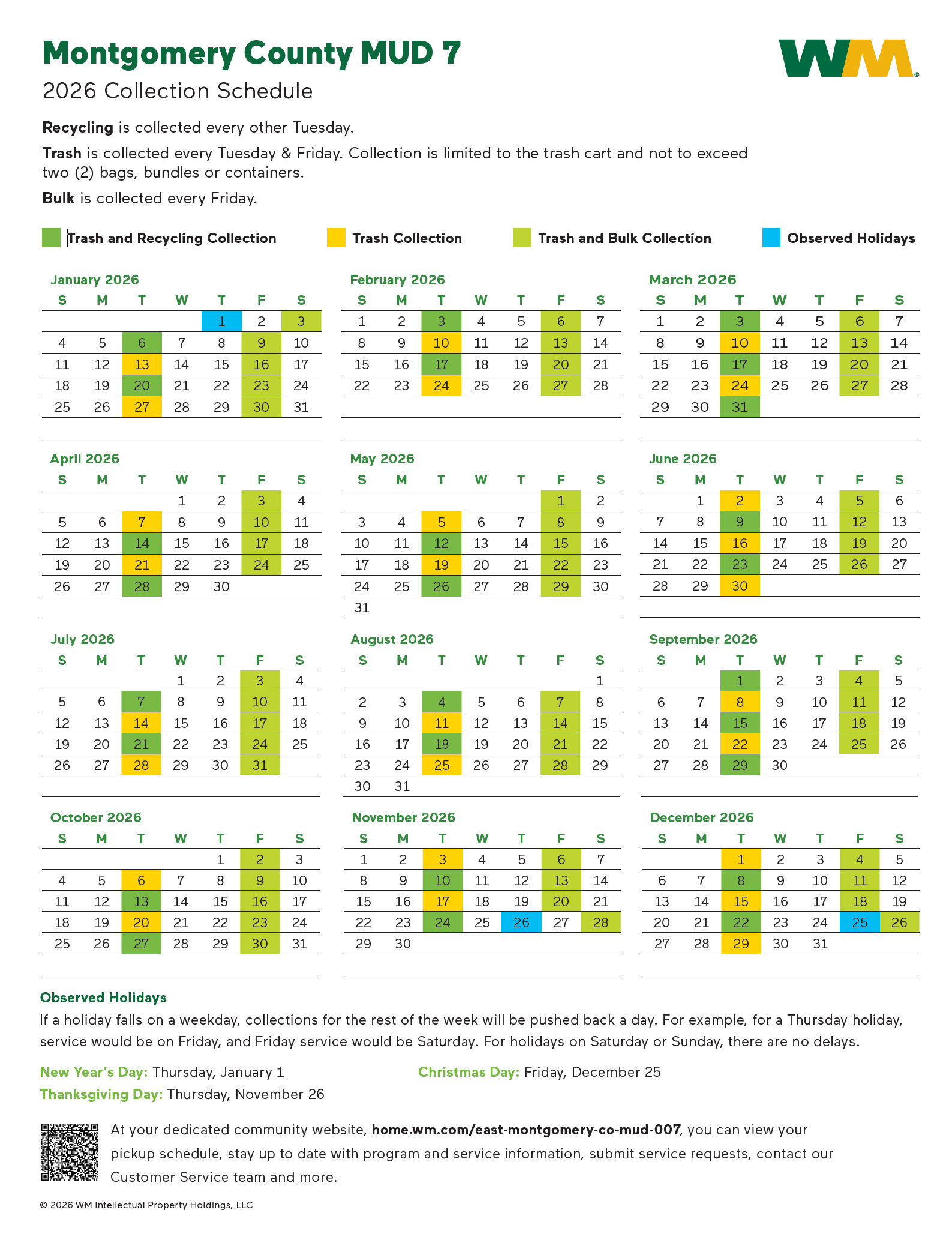 Waste Management Residential Service Page for East Montgomery MUD 7